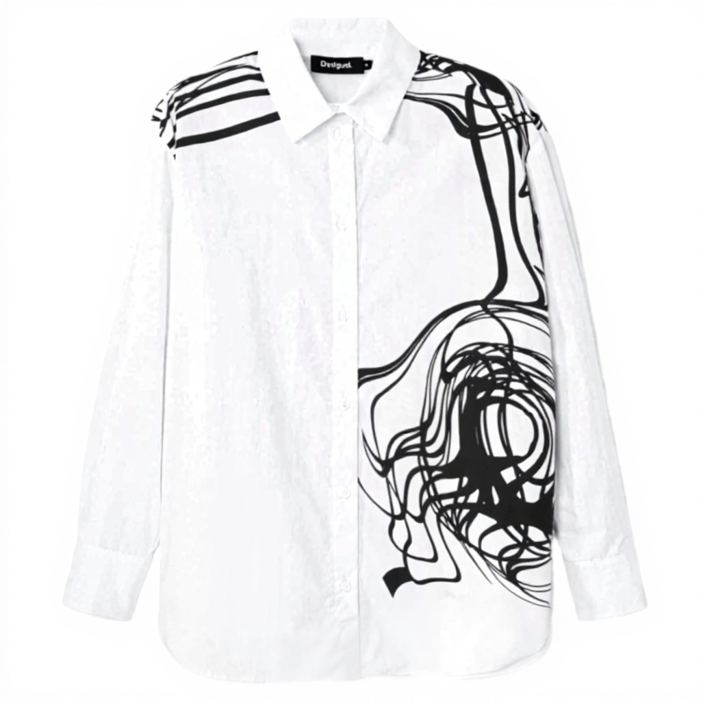 Cette blouse Desigual se distingue par sa coupe oversize et ses manches longues, offrant une silhouette décontractée et moderne. L’imprimé de détails contrastés sur fond uni ajoute une touche d’originalité, tandis que le col de chemise et la fermeture à boutons assurent une finition soignée. Conçue pour un confort optimal, elle est idéale pour celles qui recherchent un style à la fois élégant et pratique.